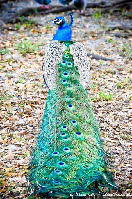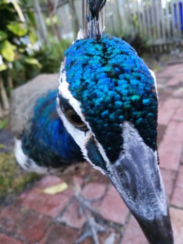 The yard is full of life with an avocado tree, a mango tree, a cactus, interesting plants and a little vegetable garden. There are real peacocks in the neighborhood.